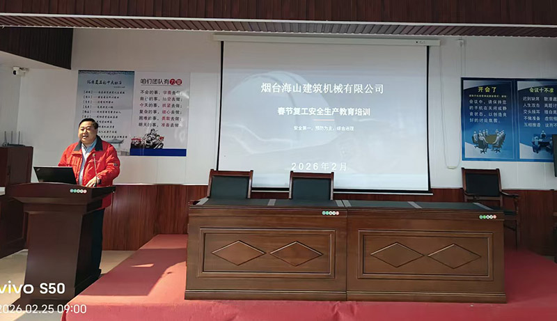 2026年2月25日上午,煙臺海山建筑機(jī)械有限公司在會議室組織召開春節(jié)復(fù)工復(fù)產(chǎn)安全生產(chǎn)教育培訓(xùn)會,會議由總經(jīng)理劉總主持,分管安全工作的張部長主講,公司全體員工參加培訓(xùn),切實上好“開工第一課”,把好“安全第一關(guān)”。